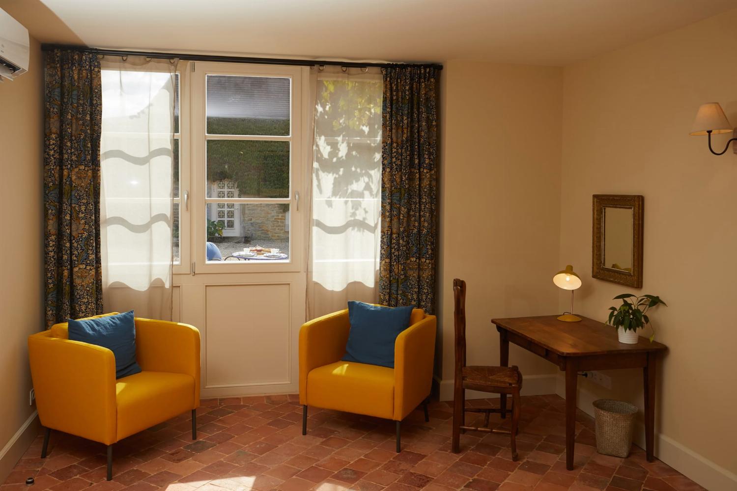 L'hébergement se répartit entre le manoir principal et une dépendance rénovée située à 10 mètres, dans la cour avant.